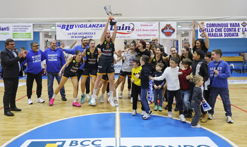 Alice Lucchesini alzava al cielo insieme alle compagne e allo staff fasanese il trofeo conquistato meritatamente, davanti ai tifosi festanti che hanno riempito il Tensostatico in questi due giorni, consegnato dal Presidente di Fip Puglia Francesco Damiani in rappresentanza di quello di Fip Campania, gestore del girone di serie B femminile e della Coppa.