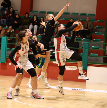 Coach Lovecchio non perdeva la calma e spronava le sue ragazze ad una maggior concentrazione in entrambe le fasi del gioco ottenendo subito riscontro. Capitàn Lucchesini suonava la carica e in poco meno di cinque minuti Fasano ribaltava il punteggio sorpassando Angri sul 20-21 grazie ad un suo canestro in solitudine dopo una palla rubata. Sarà l’unico vantaggio delle pugliesi in tutta la partita perché dopo quattro punti consecutivi di una ispiratissima Orchi, ancora la forte giocatrice toscana riportava tutti in parità sul 24-24 con una tripla siderale. Da quel momento in poi Fasano incappava nuovamente in un totale black-out, lasciando totale libertà a Pragliola, Calcaterra e Barbakadze che infierivano a ripetizione con un tremendo parziale di 13-0 che fissava il risultato sul 37-24 all’intervallo lungo.