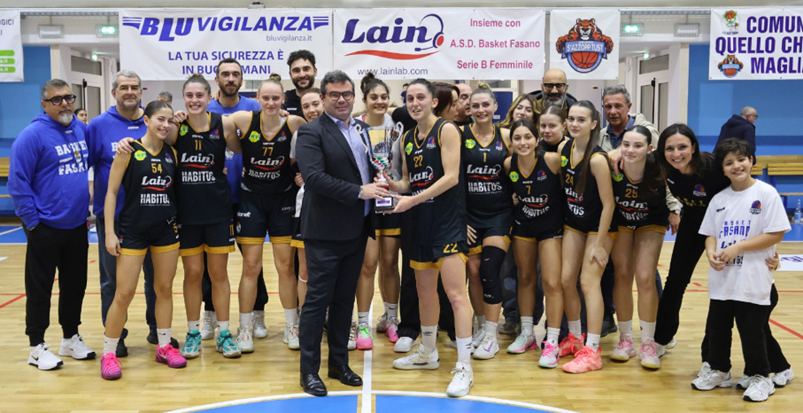 Alice Lucchesini alzava al cielo insieme alle compagne e allo staff fasanese il trofeo conquistato meritatamente, davanti ai tifosi festanti che hanno riempito il Tensostatico in questi due giorni, consegnato dal Presidente di Fip Puglia Francesco Damiani in rappresentanza di quello di Fip Campania, gestore del girone di serie B femminile e della Coppa.