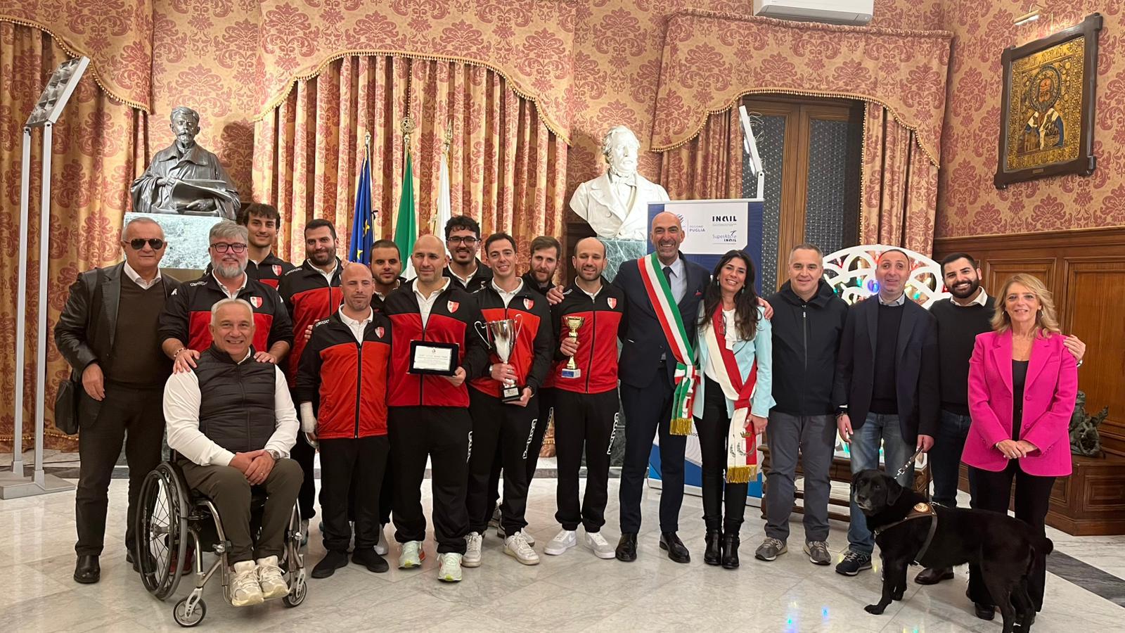 Ieri abbiamo festeggiato la Coppa Italia vinta dalla squadra di calcio A5 non vedenti con il sindaco Leccese, presso il Palazzo di Città. Presente anche il presidente nazionale della FISPIC, che rappresenta il calcio non vedenti, insieme al presidente regionale e al municipio2 cui fa capo l'associazione che ha vinto la Coppa Italia. Abbiamo festeggiato tutti insieme questo grande risultato, ma soprattutto abbiamo dato una spinta allo sport paralimpico.